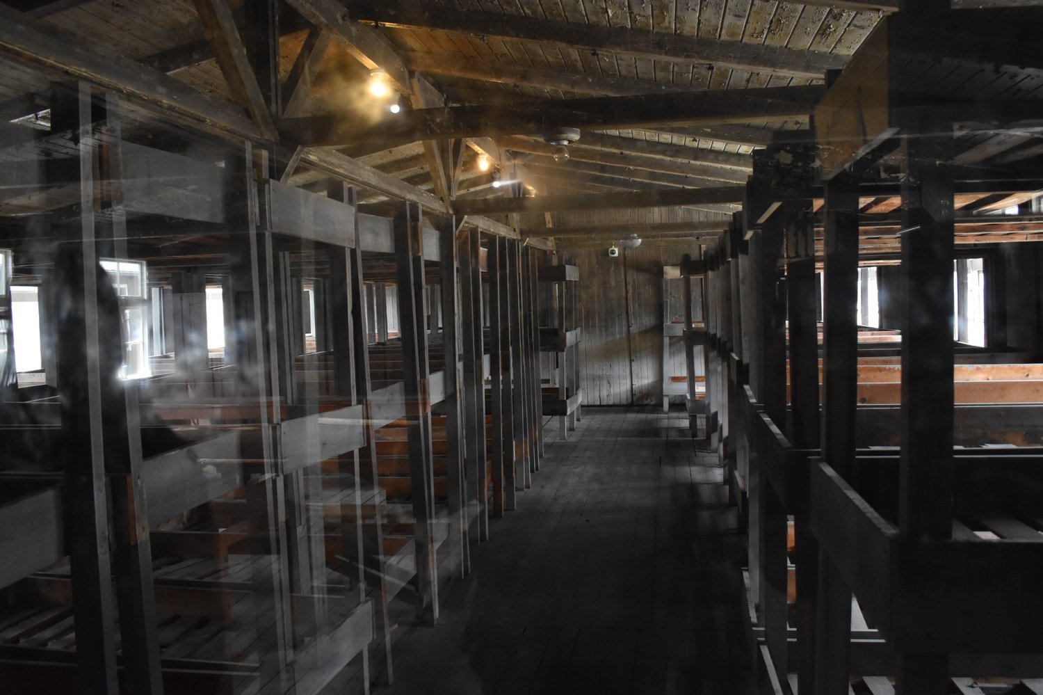 There's one former barracks for inmates still standing. The inmates slept with way too many people in such barracks, three-double bunkbeds and plenty of people on the floor.